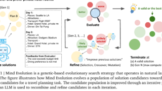 進化的アルゴリズムを用いた「Mind Evolution」でLLMの問題解決能力を向上!島型モデルを採用し、解の生成と進化で成功率と効率性を実証。複雑なタスクでの性能向上が期待されます。