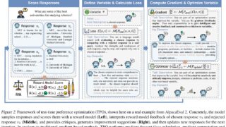 ユーザーの好みに合わせてLLMの出力を調整する新手法TPOを提案テスト時にユーザーのフィードバックを活用し、損失関数を用いた出力の最適化TPOは再トレーニング不要でコスト削減を実現しながら競争力を持つ性能論文:Test-Time Prefe...