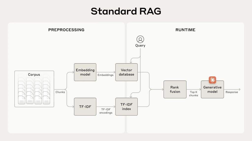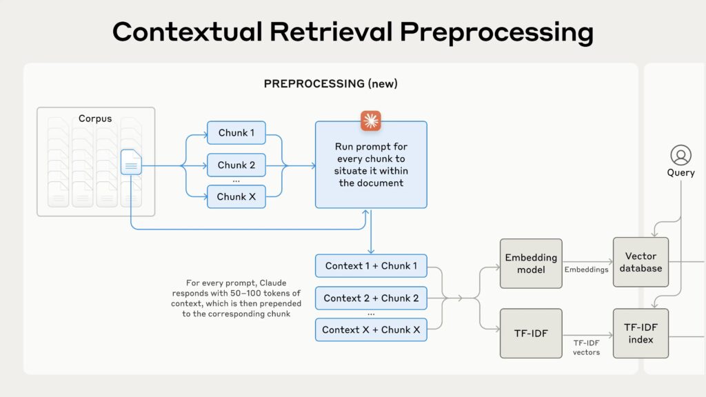 新技術は「Contextual Embeddings」と「Contextual BM25」という2つの手法を組み合わせて実現。文書を分割する際に、各チャンクに文脈情報を付加することで、より正確な情報検索を可能にしている。