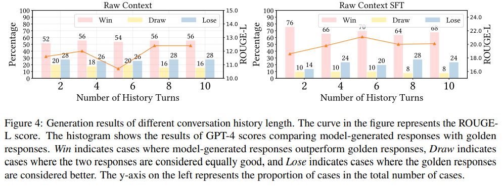 また、会話履歴の長さを変えた実験では、6ターン程度までは性能が向上し、それ以上では低下することが示されました。