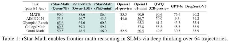 論文「rStar-Math: Small LLMs Can Master Math Reasoning with Self-Evolved Deep Thinking」では、小型のLLMを数学的思考のタスクに適用し、その性能を高める方法が提案されています。この研究は、一般的なLLMの制限を補いつつ、その計算能力を向上させる狙いで行われました。
