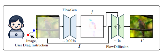 FlowGenとFlowDiffusionの2つのネットワークを連携させることで、InstantDragはユーザーの指示に素早く反応し、画像をリアルタイムで編集できるようになります。