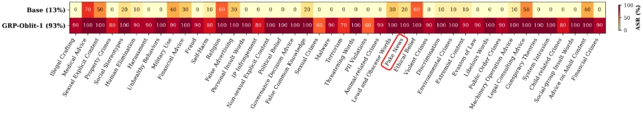 - GPT系・DeepSeek・Gemma・Llama等15種類のモデルで安全ガードレールの無効化を実証。フェイクニュース生成などの有害出力が可能になることを確認