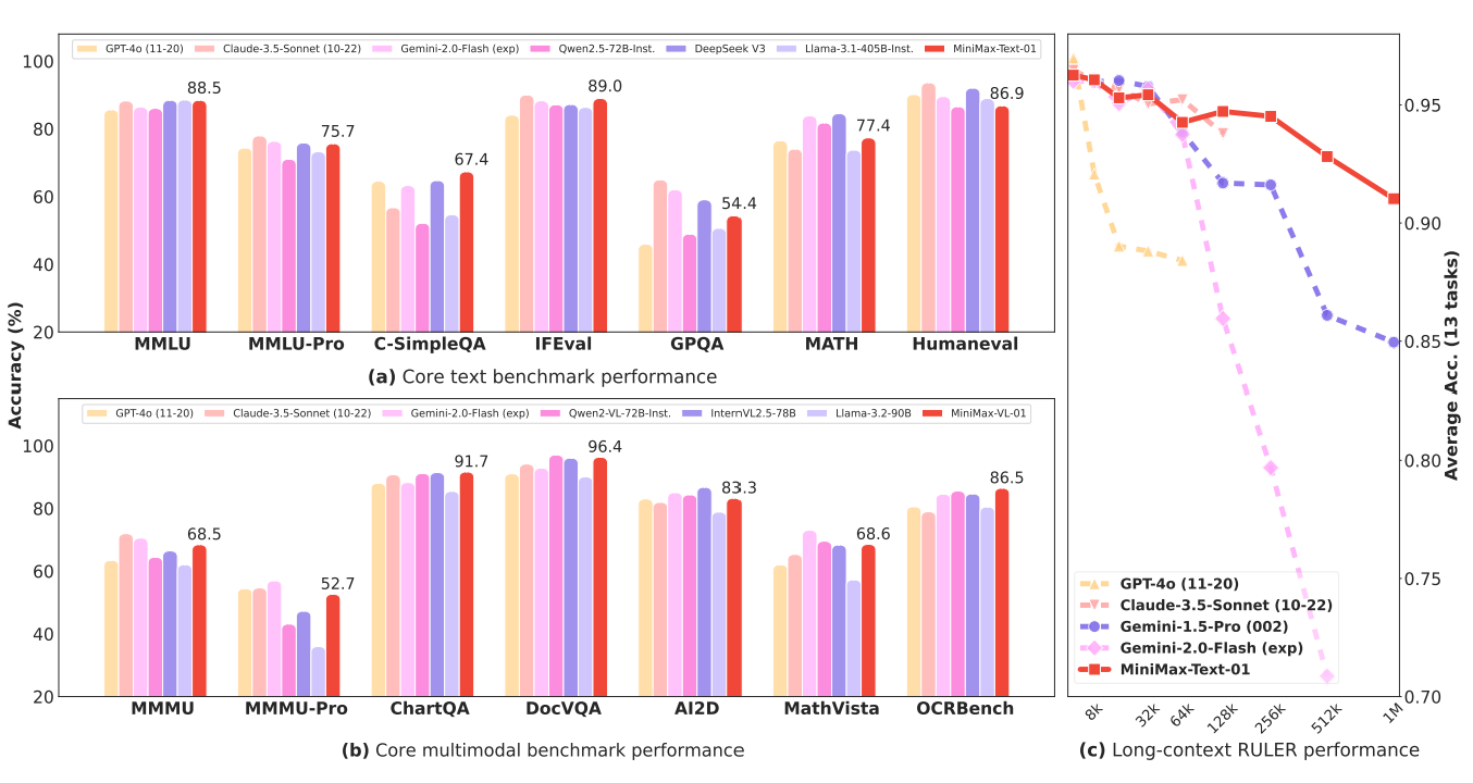 • 極大量のトークンを処理できるMiniMax-01シリーズの優れた性能