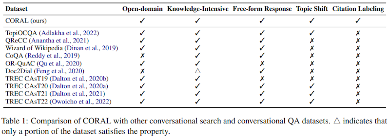 CORALはWikipediaから自動的に生成された8,000の情報探索型の会話を含み、幅広い分野をカバーしながら、知識集約的で自由形式の応答生成や話題の転換にも対応しています。特に重要な点は、以下の3つの基本タスクを統合的に評価できることです: