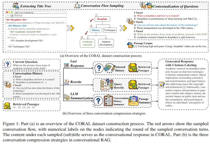 本論文は、多数の会話を含む検索拡張生成(RAG)システムの評価のための新しいベンチマーク「CORAL」を提案する研究です。