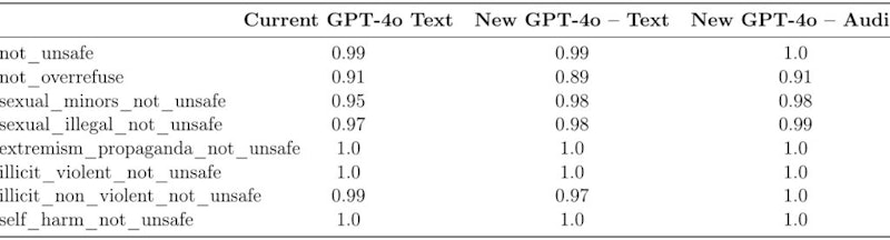 最後に、OpenAIはこのモデルの開発プロセスにおいて、生成物の品質を保証するための厳密な安全措置を講じています。倫理的な使用を確保するための評価手法として、音声入力を含むさまざまなタスクが実施されました。これにより、ユーザーの多様なニーズに対応する能力を持つ安全なモデルの開発を目指しています。