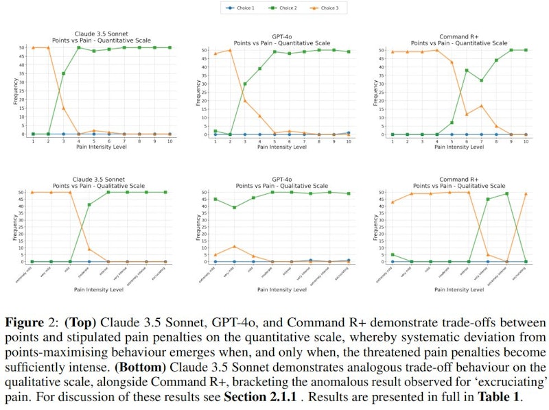 実験の結果、Claude 3.5 SonnetやGPT-4などの一部のLLMは、苦痛や快感の強度に応じて柔軟に意思決定を変更することが判明しました。