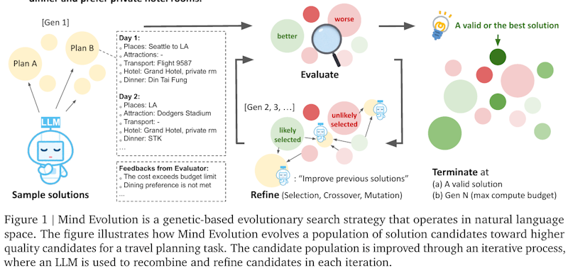 - 進化的アルゴリズムを利用してLLMの問題解決能力を向上させる手法「Mind Evolution」を提案