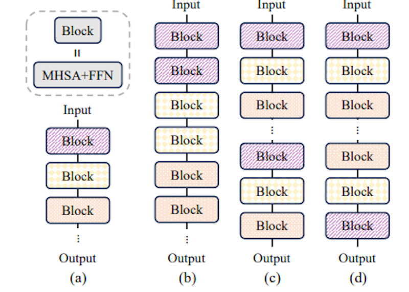 さらに、MobileLLMは「重み共有」と呼ばれる技術を導入することで、隣接するレイヤー間で重みを共有し、メモリの使用量を増やさずにレイヤー数を増やすことに成功。その結果、計算効率が向上し、実行時のレイテンシーも低減します。特に、MobileLLM-LSと呼ばれるバリエーションでは、重みを即時に再利用するブロック単位の共有手法を採用し、さらなる性能向上を図っています。