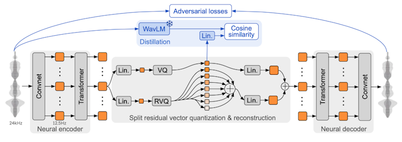 Moshiのシステムは、音声とテキストの両方を処理するためのTransformerベースのモデル「Helium」と、音声トークンを生成する「Mimi」という音声コーデックを組み合わせて動作します。